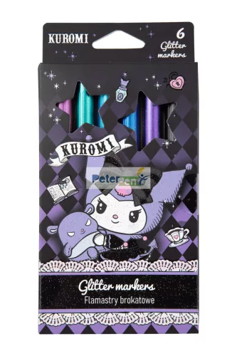 A Kuromi mintás 6 db-os glitteres filctoll készlet. A csillogó glitteres színek különleges hatást adnak a rajzoknak, így még látványosabb és egyedibb alkotások készíthetők velük.