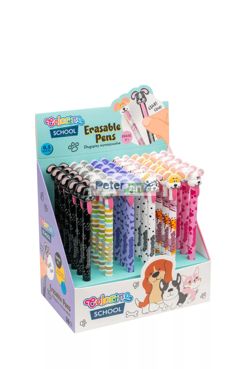 Nyomógombos radírozható toll Colorino DOGS 10005PTR 36db/disp.