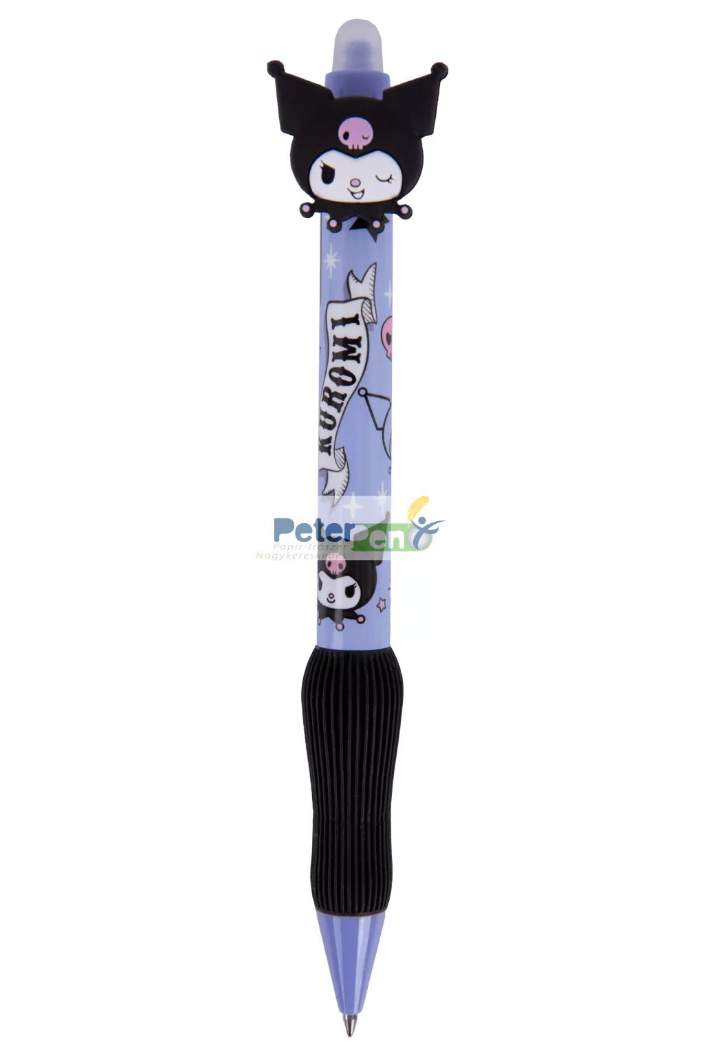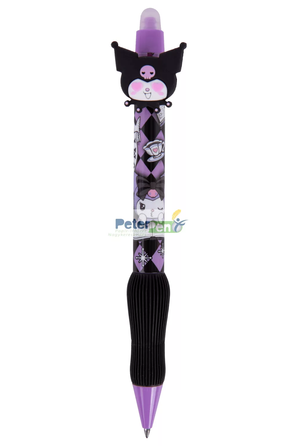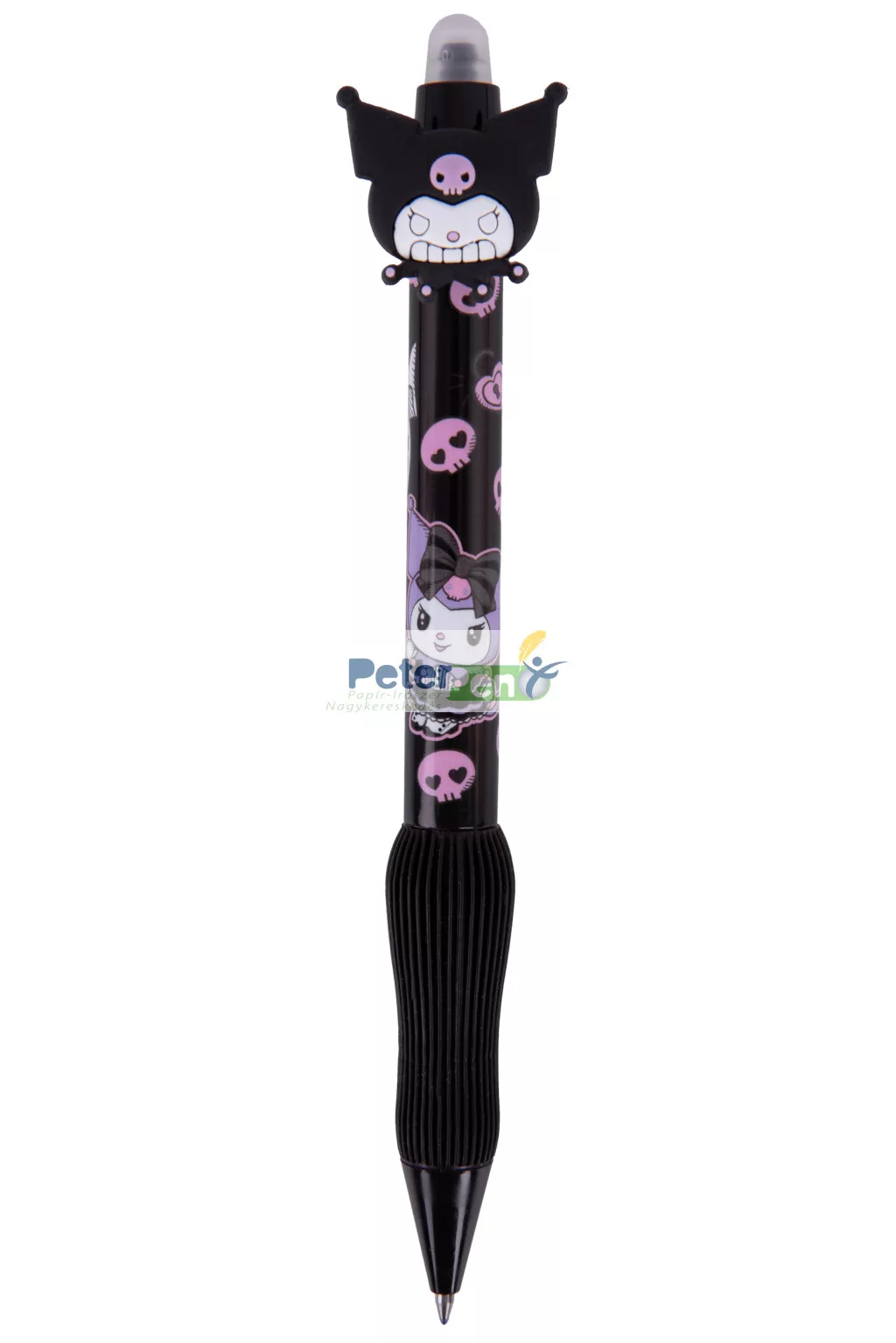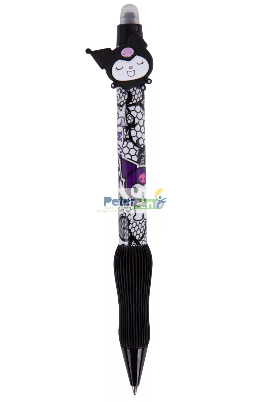 Vidám és praktikus KUROMI mintás radírozható toll, amely tökéletes választás iskolai használatra. A toll különlegessége, hogy a szilikonos KUROMI figura megnyomásával működtethető a nyomógombos mechanika, ami játékos és egyedi megjelenést kölcsönöz neki.
