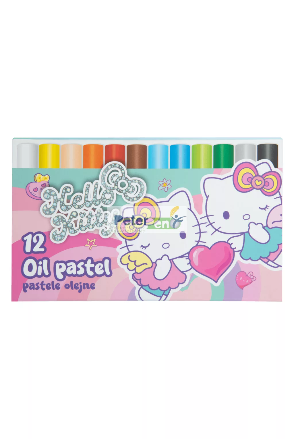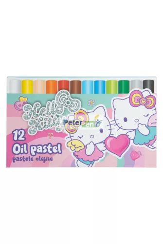 Hello Kitty mintájú 12db-os, kerek testű olajpasztell készlet.