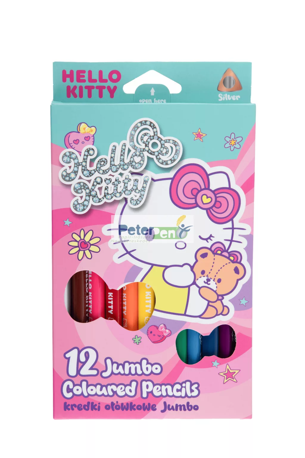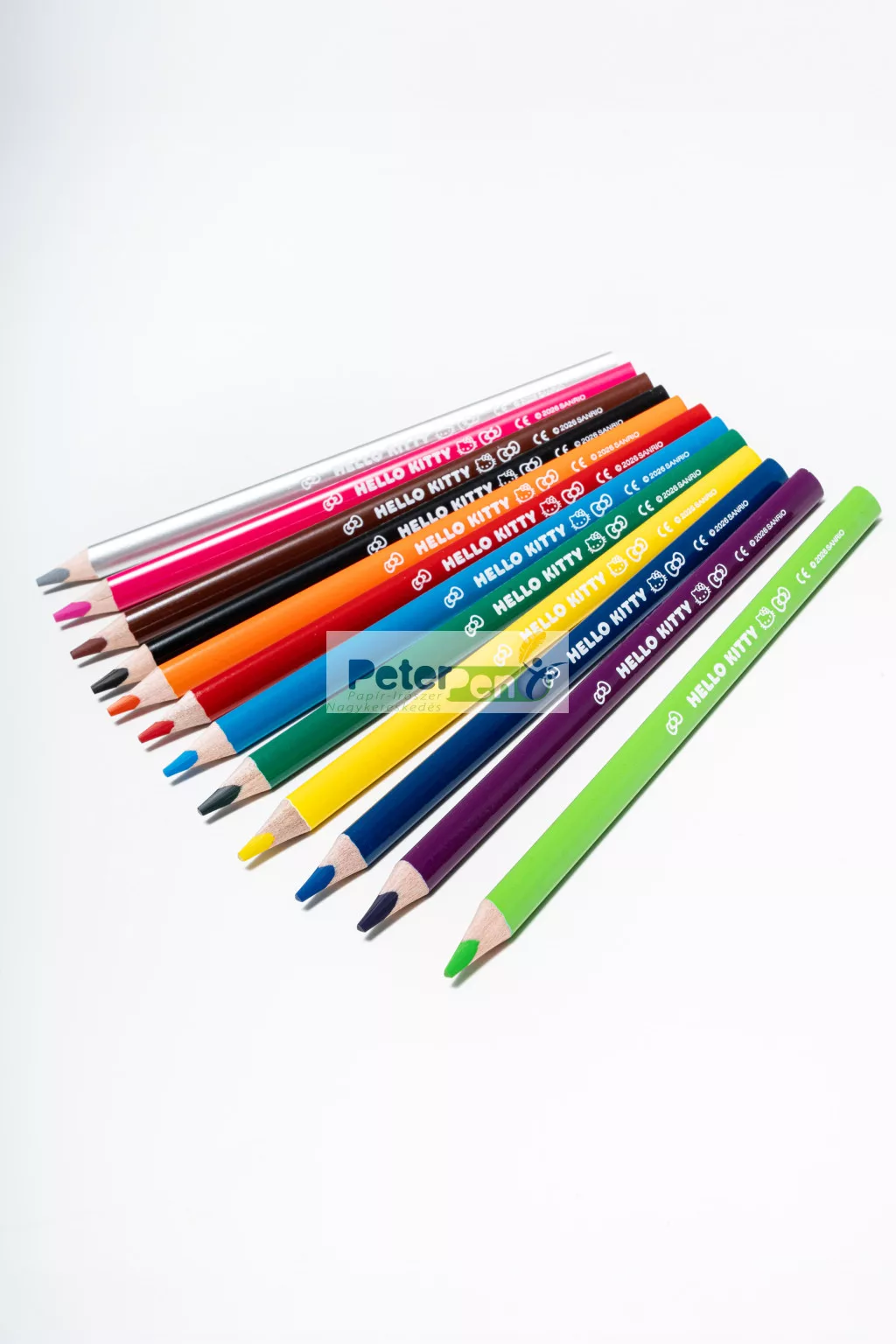 Hello Kitty mintájú 12db-os, vastag háromszög testű színesceruza készlet.